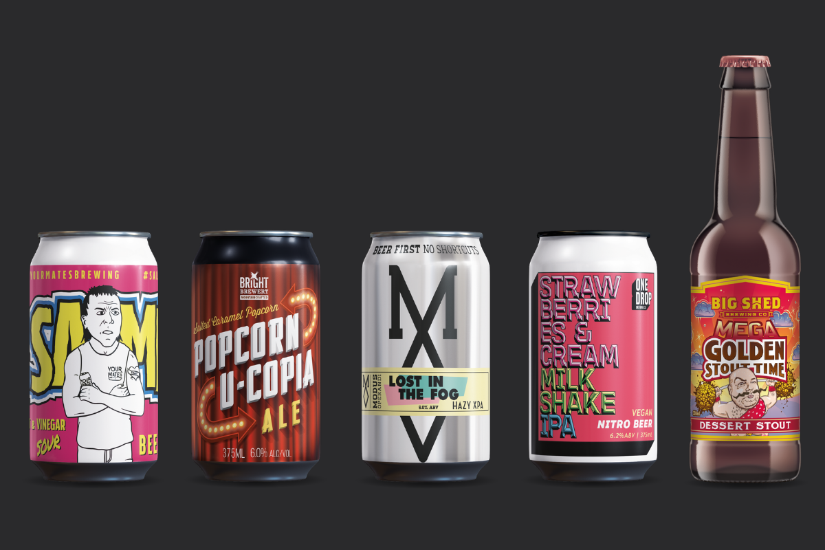- Sambo Salt & Vinegar Sour Your Mates Brewing Co, Popcorn-Ucopia Salted Caramel Popcorn Ale Bright Brewery, Lost in the Fog Modus Operandi Brewing Co, Strawberries & Cream Milkshake IPA One Drop Brewing Co, Mega Golden Stout Time Big Shed Brewing Concern. GABS 2020 Festival Beer Mixed Six Pack Dan Murphy’s. Image supplied