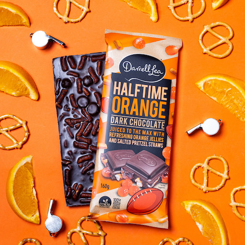 - Darrell Lea Halftime Orange. Aussie Summer Party Range. Image supplied