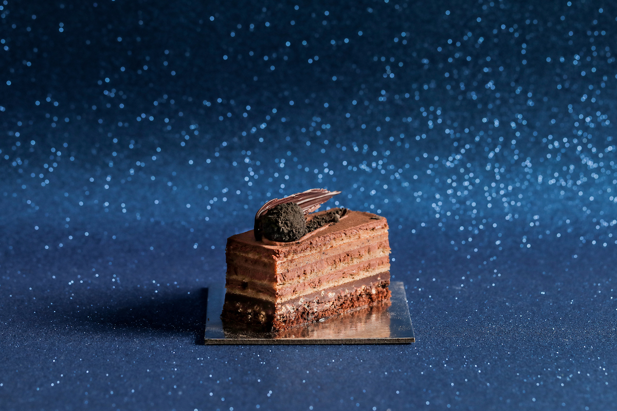 A heavenly mouthful you’ll definitely want to indulge in, from the lower layer of praline crunch reminiscent of the textures of the moon to the carved jet-stream of chocolate that brings the meteor’s crashing effect to life, the Meteor Cake is an explosion of flavours and sends chocolate lovers into a black hole of all things divine.