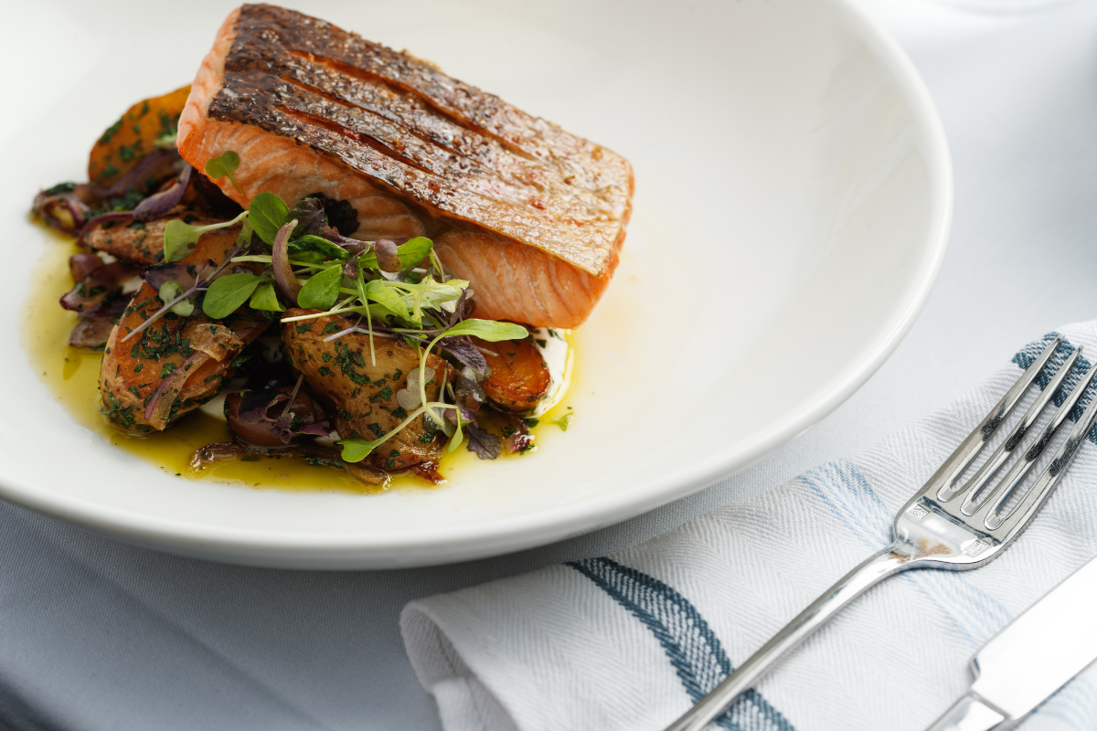 - Crispy Skin Atlantic Salmon ($39), Harbourfront Seafood Restaurant Sydney. Photographed by Steve Woodburn. Image supplied.