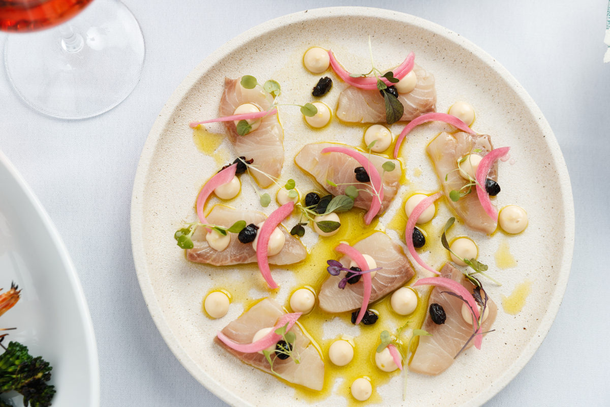 - Kingfish Carpaccio ($28), Harbourfront Seafood Restaurant Sydney. Photographed by Steve Woodburn. Image supplied.
