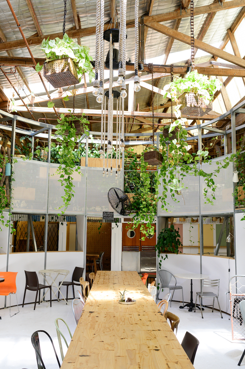 Outside, the space is not hard to miss, with its large sunshine-yellow sign brightening the East Fremantle precinct and architecturally beautiful white stone that opens up to a large warehouse space. Inside is just as cool, where the food establishments line the walls of the venue and long, wooden tables sit in the centre, perfect for communal eating amongst friends. There is plenty of greenery climbing the walls and hanging from the roof, making The Sunshine Harvester Works a vibrant place that is sure to be bustling all night.
