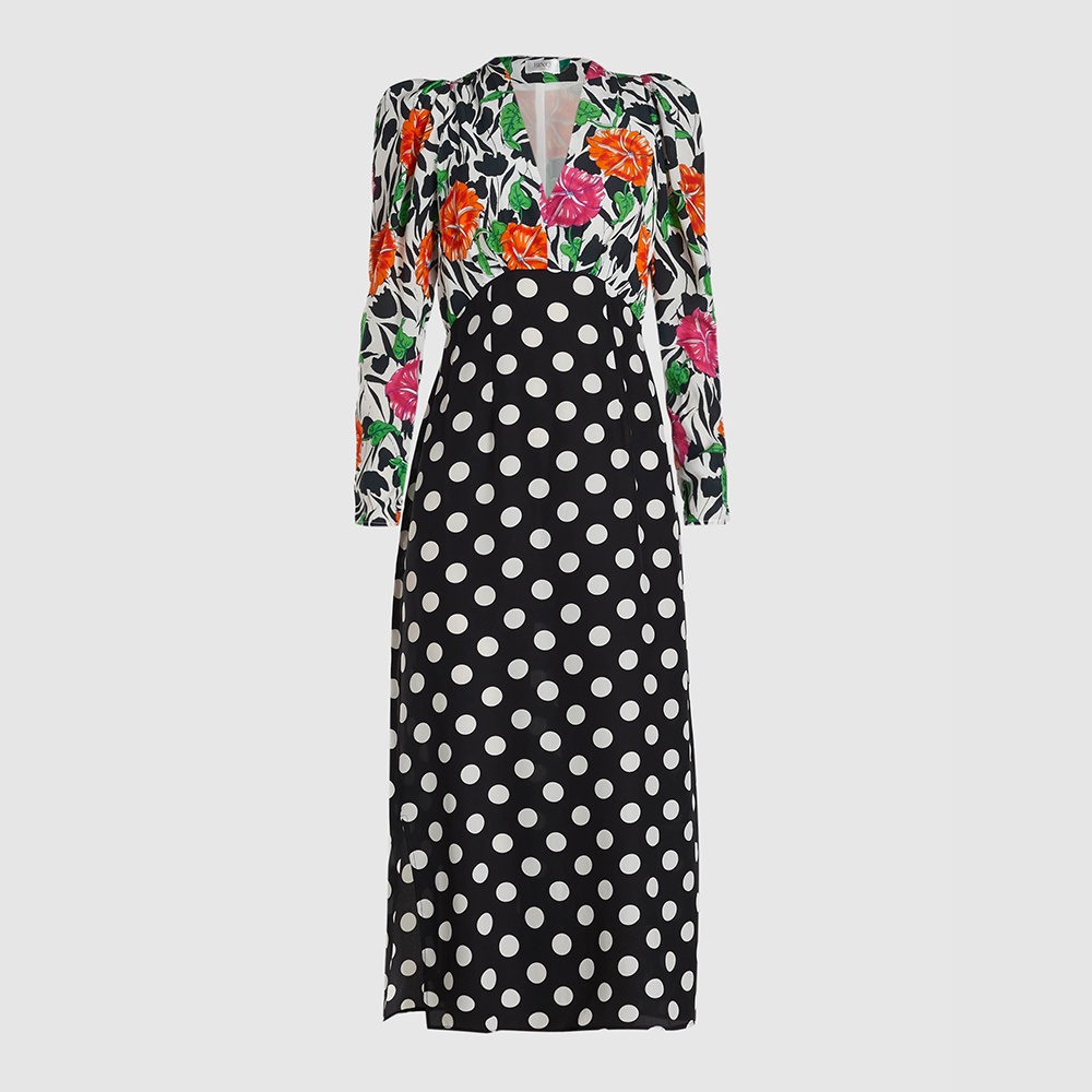 - Rixo multicoloured Gretal printed silk midi dress. Image via The Luxury Closet