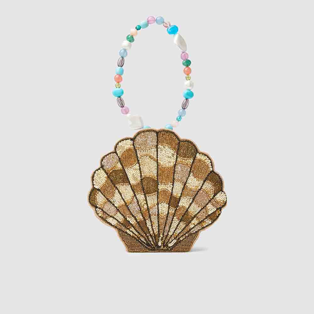 - Rixo Gold Sacha Beaded Strap Bag. Image via The Luxury Closet.