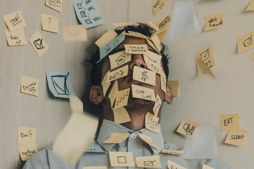 - Man drowning in work. Photographed by Luis Villasmil. Image via Unsplash
