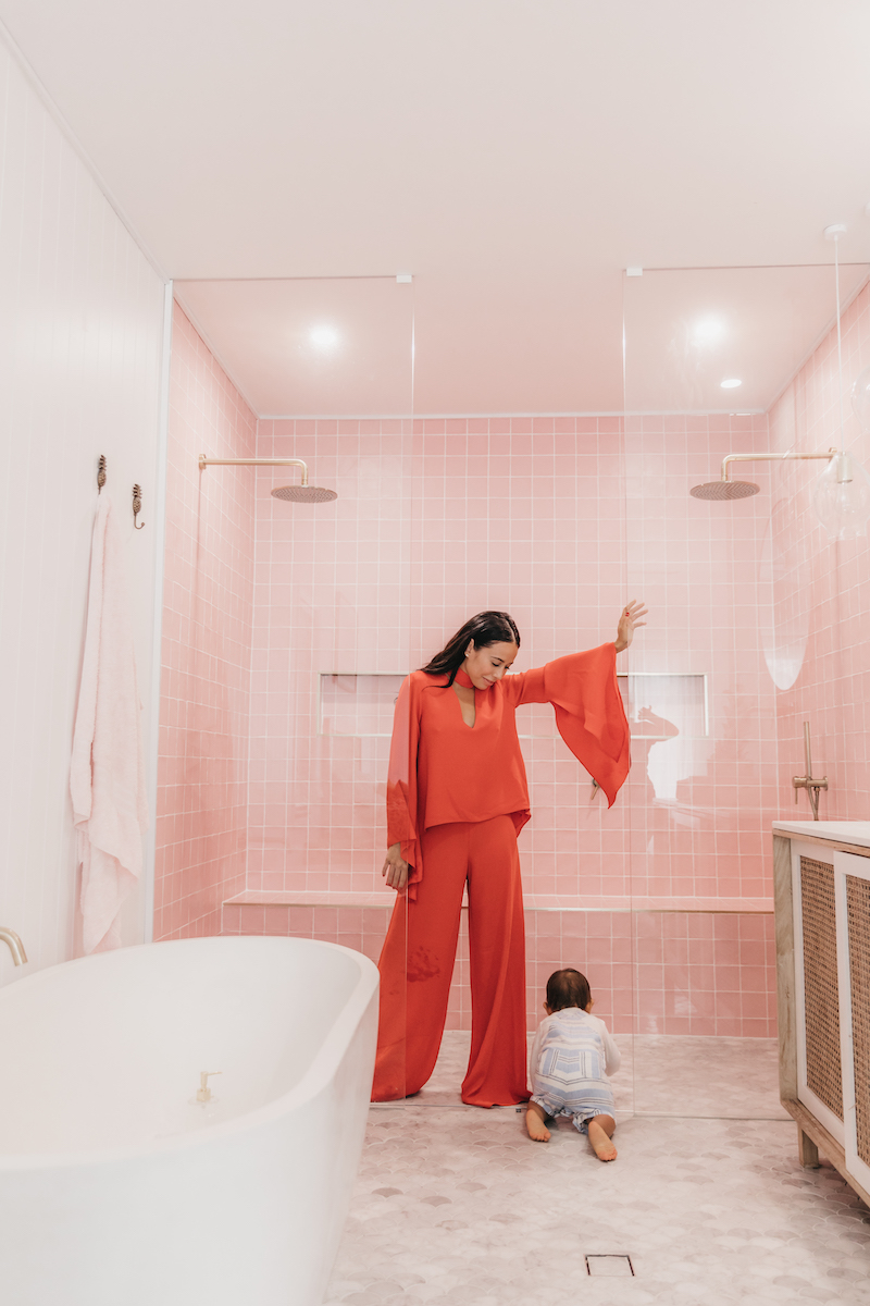 Putting aside baking, Netflix bingeing and whipping up dalogna coffees, Rebecca saw the opportunity that a break caused by COVID-19 might offer, and began to completely redesign the production line of her brand. She has relaunched with a collection that is 100% sustainable, ethically sourced and produced in child-free environments; all whilst inside an AFL isolation hub, alongside her partner’s (Lachie Henderson, Geelong Football Club) training and AFL game schedule and toddler in tow.