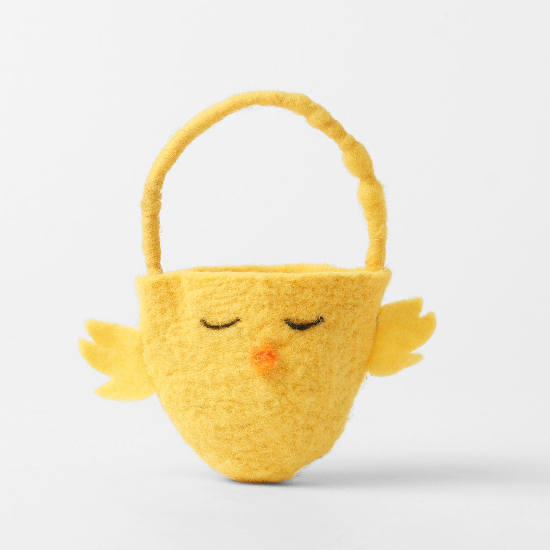 - Morgan and Finch Woollen Chick Egg Basket. Image via Bed Bath and Table website.