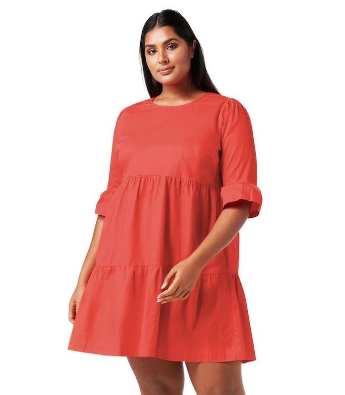 - Forever New Curve. Brydie Curve Cotton Smock Dress Red. Image supplied.