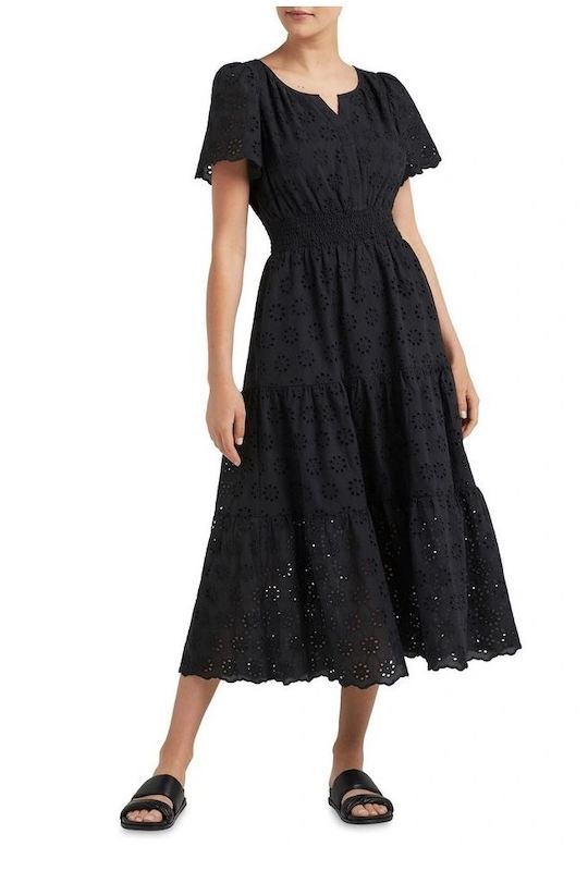 - French Connection. Broderie Midi Dress Black. Image supplied.