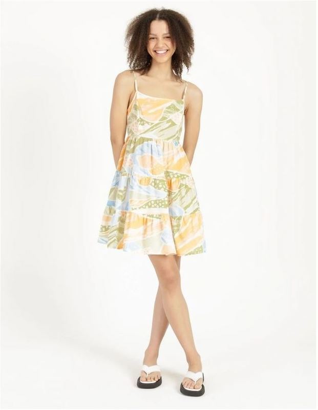 - Miss Shop. Tie Back Tiered Mini Dress Malibu Splice. Image supplied.