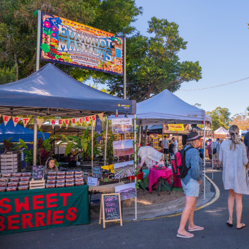 - The Eumundi Markets in Noosa, Queensland. Image supplied via Tourism and Events Queensland.