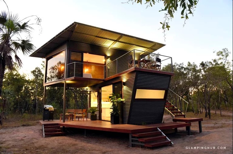 Just under two hours south of Darwin’s CBD, explorers will find Glamping Hub’s luxury container. Located close to Litchfield National Park, this container is the Northern Territory’s very own private delight. Accommodating two guests per stay, the Rakula villa is perfect for those who love to explore, relax and of course, glamp. Inside the two-storey container, guests will be treated to a private kitchen, bathroom and bedroom with floor to ceiling glass windows that show off the extraordinary views. The luxury container also boasts patios on both levels, a private barbeque and air conditioning. On your stay, be sure to take a dip in the nearby Florence Falls.