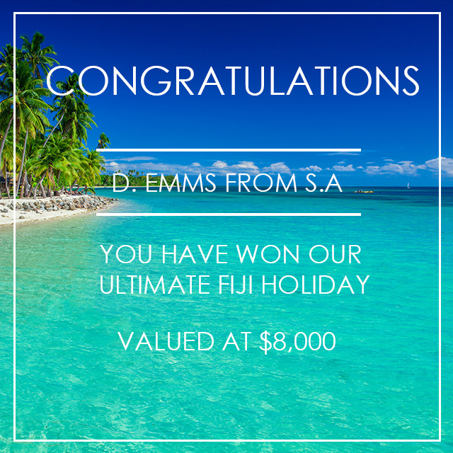 - Fiji Escape Winner: D.Emms SA. Valued at $8,000