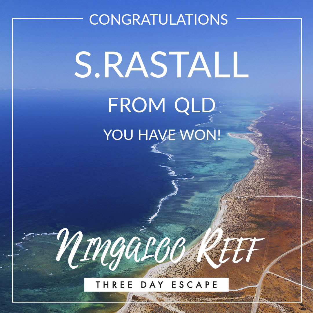 - Ningaloo Reef Escape Winner S.Rastall from QLD. Valued at $5,000