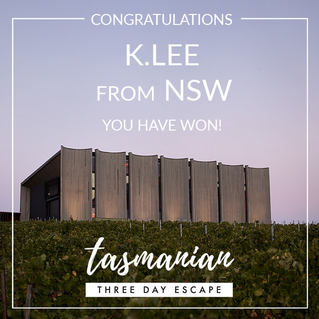 - Tasmanian Escape Winner K.Lee NSW. Valued at $4,000